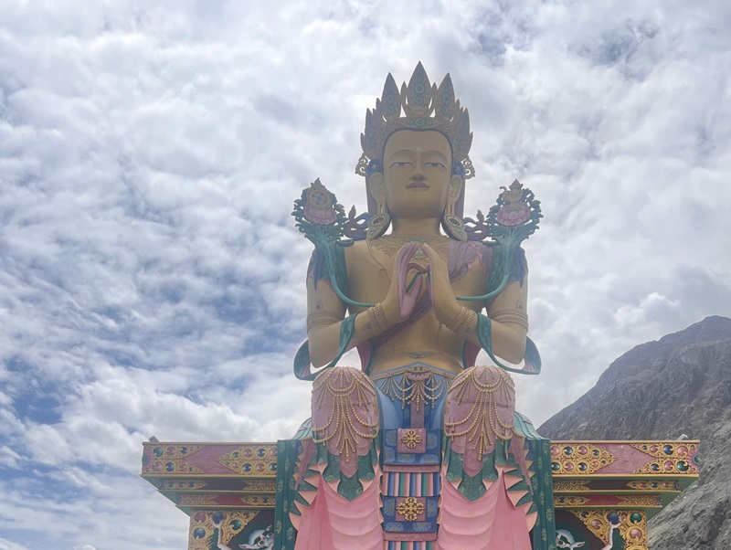 Trên đường quý du khách ghé thăm thiền viện Diskit - thiền viện Phật giáo lớn nhất và lâu đời nhất ở thung lũng Nubra. Toạ lạc ở ngay phần đồi trên thung lũng Nubra, đối diện với thiền viện này là bức tượng lớn và đầy màu sắc của Phật Maitreya (Phật Di Lặc) cao 32 m, nhìn ra sông Shyok, con sông có thượng nguồn ở Ấn Độ và chảy sang Pakistan. Pho tượng này được xây dựng năm 2006, với hy vọng bảo vệ bình an cho vùng đất Ladakh, tránh khỏi cuộc chiến tranh có thể xảy ra với Pakistan cũng như ý nghĩa củng cố nền hòa bình trên thế giới.