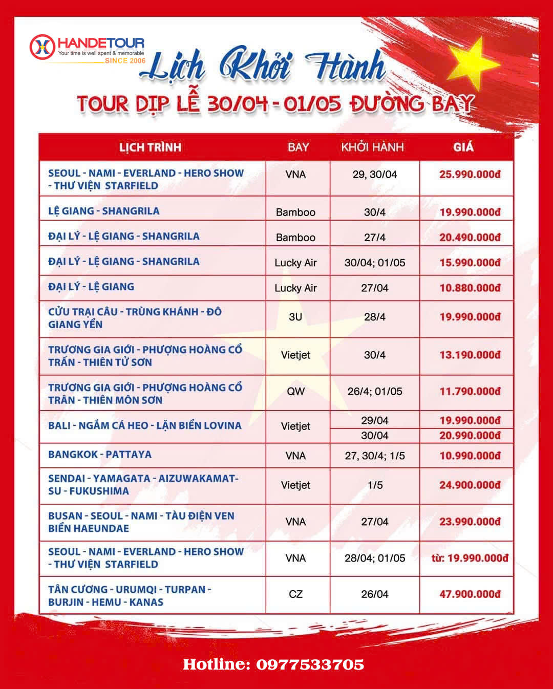 Chùm Tour Du Lịch Quốc Tế 30-04-2025