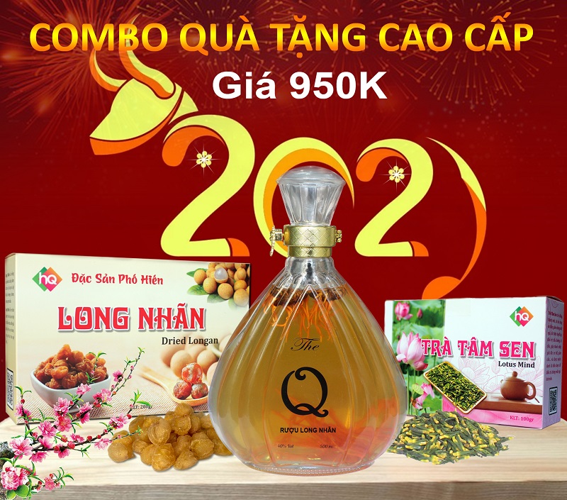 1. Rượu Long Nhãn Biếu Tết: Rượu Long Nhãn là dòng sản phẩm cao cấp của The Q, có hương vị Mạnh mẽ đắng cay của Rượu, Mềm mại của Nếp thơm, Nồng nàn của Long Nhãn và Ngọt dịu của Mật ong hoa Nhãn. Rượu Long Nhãn có tính ấm, bổ huyết, an thần, kháng khuẩn, giảm căng thẳng, mệt mỏi, tăng trí thông minh, làm chậm quá trình lão hoá, dưỡng khí, bổ thận, tráng dương…