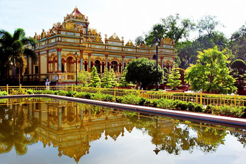 Đến Mỹ Tho. Quý khách viếng Chùa Vĩnh Tràng – ngôi chùa nỗi tiếng nhất tỉnh Tiền Giang với kiến trúc Đông – Tây kết hợp.