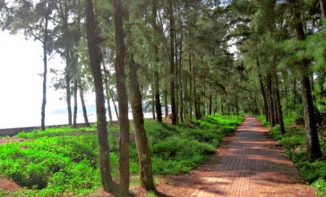 Một con đường dài hơn 2km được lát gạch đỏ, men theo bờ biển, 2 bên là 2 hàng dương xanh ngắt, đung đưa theo gió. Bạn có thể đạp xe, đi dạo bộ trên con đường tình yêu này vô cùng lãng mạn. Đảo Cô Tô có tiếng hàng dương vi vu trong tiếng sóng biển rì rào, gió dịu nhẹ mơn man, một khung cảnh trước mắt xanh ngắt màu của rừng cây, vàng của ánh nắng, và đỏ của gạch lát, thật là không có gì lãng mạn và mộng mơ hơn khi đứng ở đây và cảm nhận điều tuyệt vời này. Đảo Cô Tô hoang sơ và lãng mạn cũng chính vì sở hữu nhiều vẻ đẹp tự nhiên, với những con đường hàng cây, những bãi biển xinh đẹp rộng bao la đem đến cho du khách những cảm giác tuyệt vời, thanh bình và nhẹ nhàng.