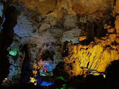 Điểm dừng chân tiếp theo là Hang Sửng Sốt, nơi du khách sẽ không khỏi trầm trồ trước sự hùng vĩ của toàn cảnh vịnh Hạ Long khi rời khỏi động. Đây là hang động lớn nhất vịnh Hạ Long, với những măng đá và thạch nhũ tráng lệ được kiến tạo trong hàng triệu năm, hoá thân vào vô vàn hình thù phong phú và kì ảo.