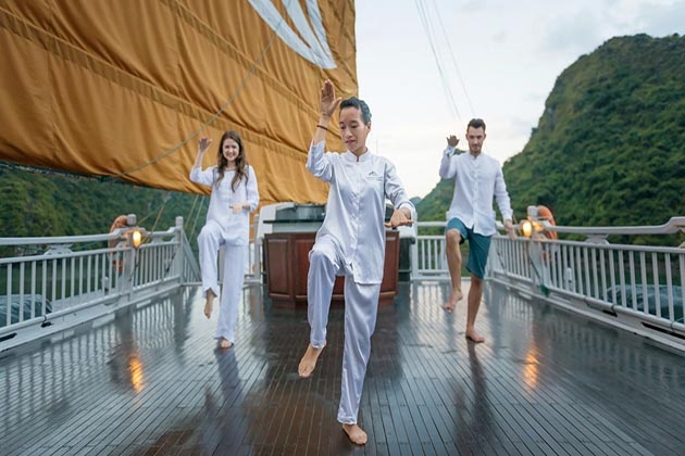06h30 Tập Thái Cực Quyền trên boong tàu L’Odyssée Sundeck