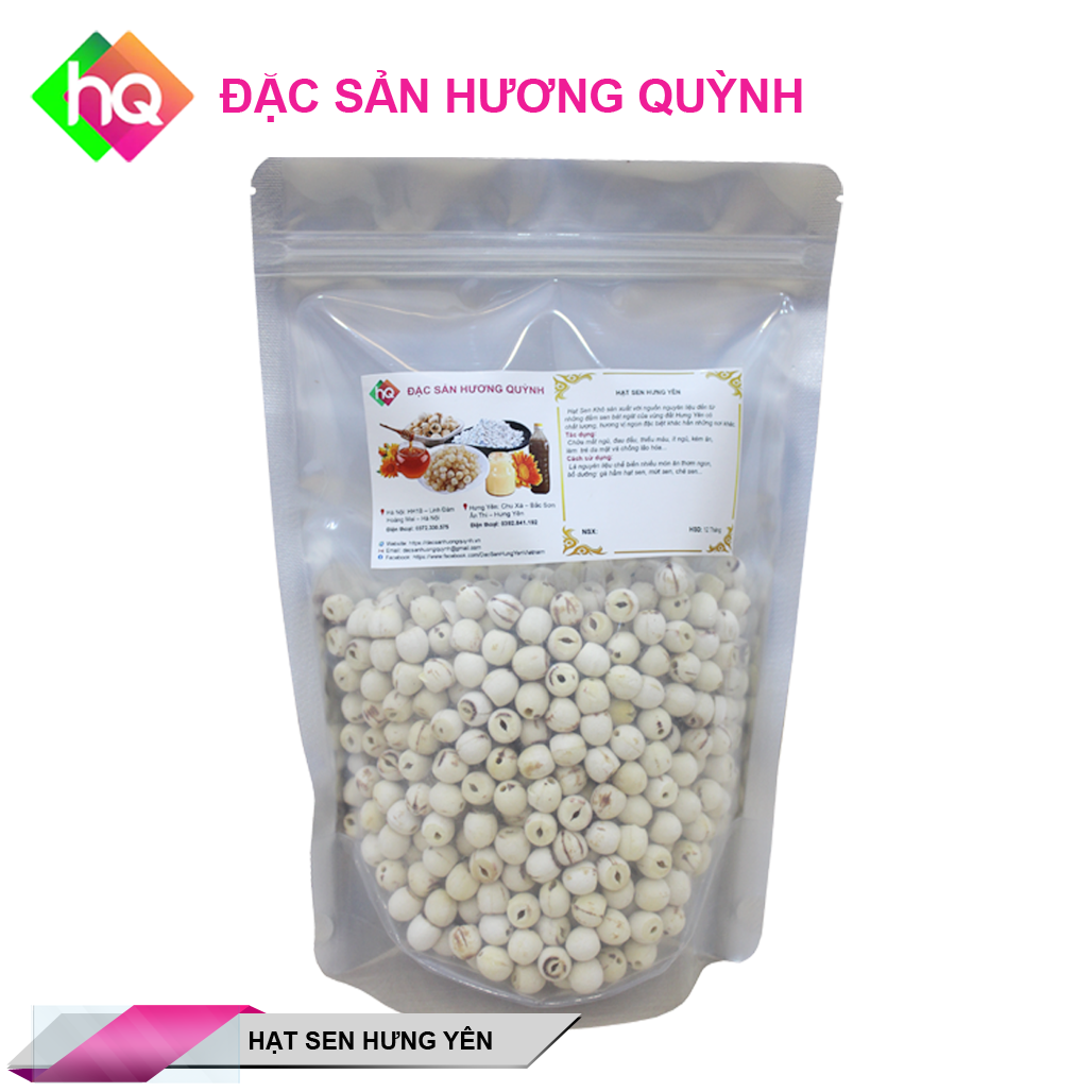 4 – Hạt Sen sấy khô được Hương Quỳnh thu mua từ các hộ gia đình vào chính vụ Sen tháng 7, tháng 8. Hạt Sen được chặt vỏ, chà, cắt đầu, thông tâm, sấy khô, phân loại và đóng gói. Hạt Sen Hưng Yên khác với các vùng khác là Hạt Sen tròn nhỏ hơn, chắc, bở, thơm, bùi, béo, ngọt thanh nhẹ.
