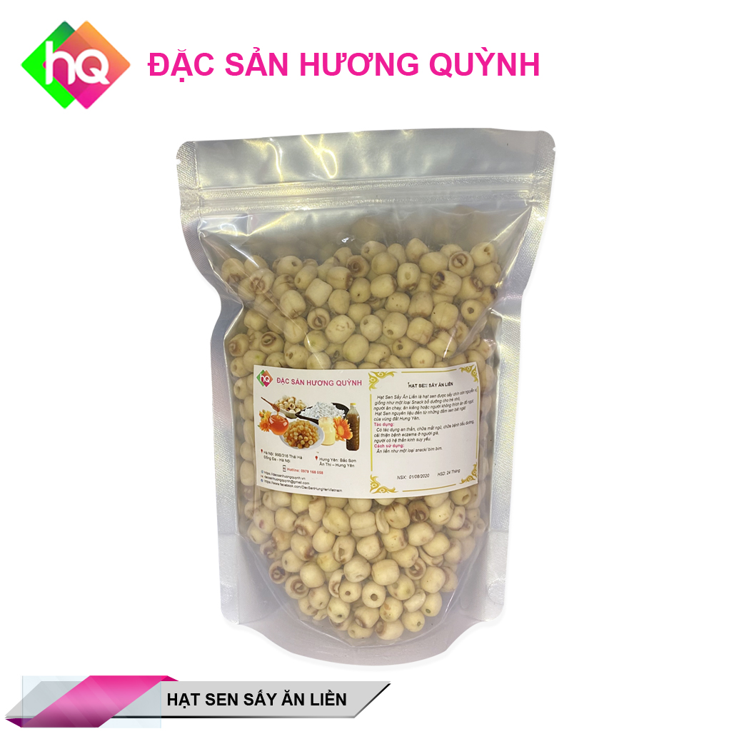 6 – Hạt Sen Sấy Ăn Liền được Hương Quỳnh chế biến từ những Hạt Sen khô, thơm, giòn, bở và ngậy, dùng như một loại Snack, hợp với ăn vặt, ăn kiêng, ăn chay