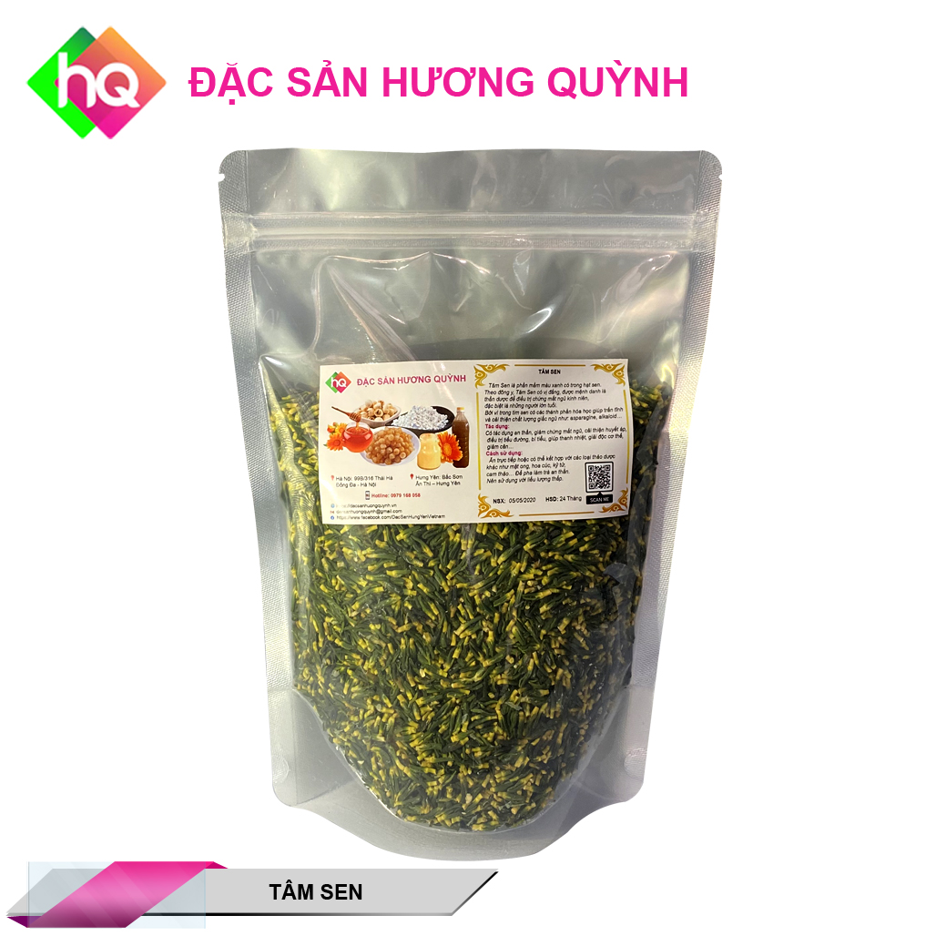 5 – Trà Tâm Sen sấy khô được Hương Quỳnh thu hoạch trong quá trình làm Hạt Sen, Tâm Sen được sấy khô và đóng gói làm trà an thần. Tâm Sen (tim sen) Hương Quỳnh to, mẩy, ngậy và hơi có vị đắng