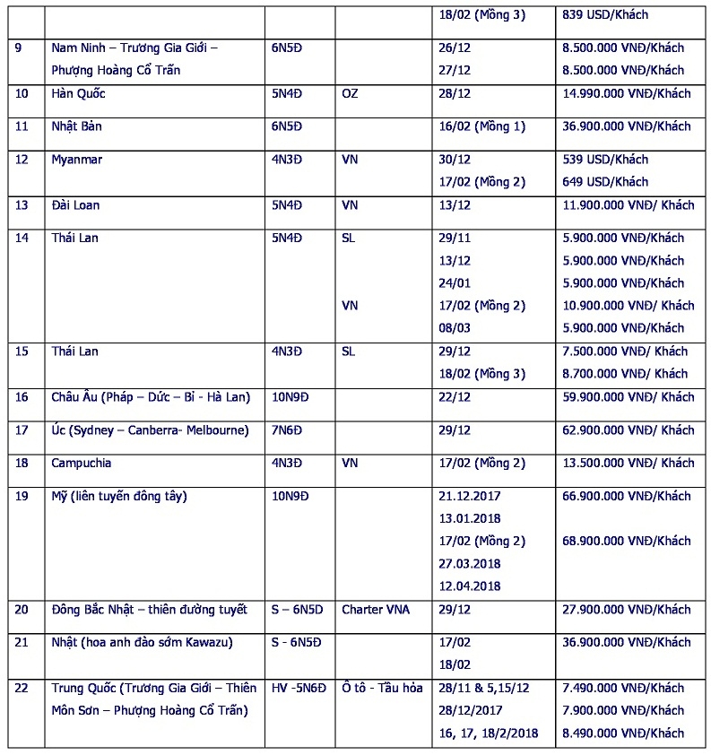 Handetour mở bán tour du lịch tết 2017-2018